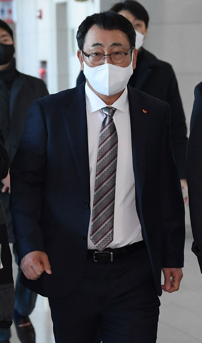 [이데일리 방인권 기자] 유영상 SK텔레콤 대표가 17일 오전 서울 중구 서울중앙우체국에서 열린 ‘과기부 장관-통신사 CEO 간담회’에 입장하고 있다. |