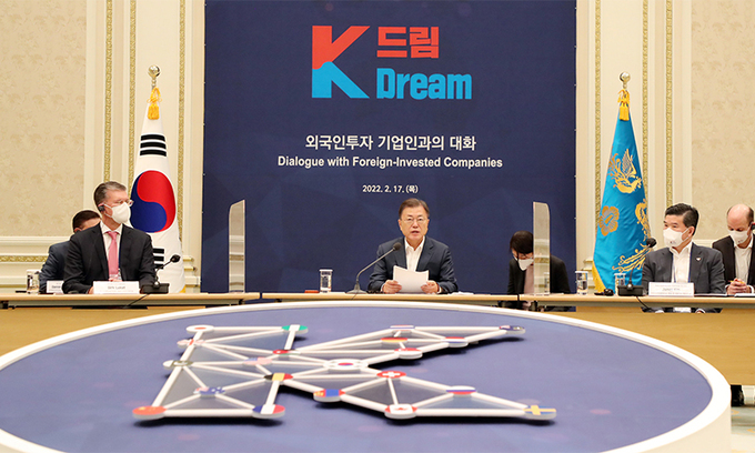 문 대통령은 그러면서 “글로벌 비즈니스를 선도하는 외투 기업인들이 투자처로서 한국의 매력을 세계에 널리 알리는 ‘투자 전도사’가 되어주길 바란다”고 말했다. 문승욱 산업통상자원부 장관은 이날 회의에서 공급망·탄소 중립 등 분야에서 외국인 투자에 대한 인센티브를 강화하는 내용을 담은 투자 유치 방안도 발표했다.