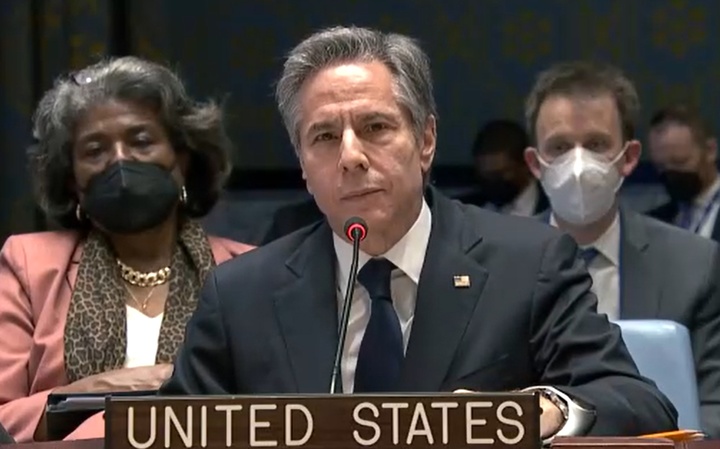토니 블링컨 미국 국무장관은 17일(현지시간) 유엔TV로 중계된 안보리 공개 회의 발언에서 "평화와 안보에 대한 가장 즉각적인 위협은 우크라이나를 상대로 한 러시아의 곧 닥칠 듯한 공격"이라며 자국이 가진 정보를 상세히 설명했다.