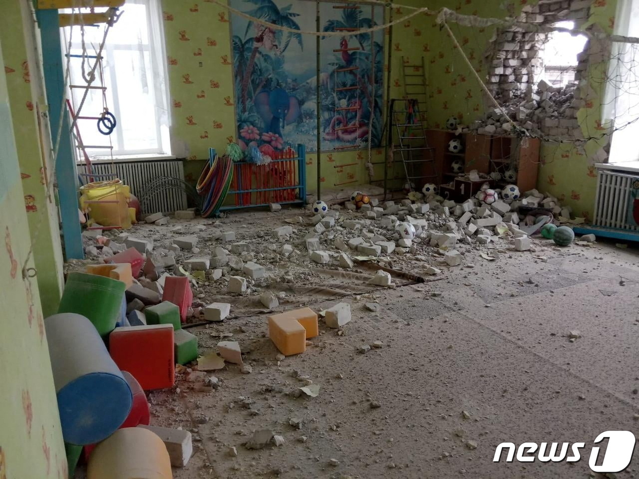 러시아의 지원을 받는 반군이 루간스크 지역 내 마을을 포격해 유치원 건물이 파손됐다고 우크라이나 군이 밝혔다. © 로이터=뉴스1 © News1 정윤영 기자 |