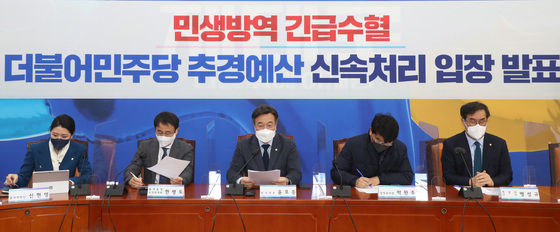 정부가 방역지원금 300만원 규모에서 물러서지 않는 가운데 민주당은 정부안대로 300만원을 우선 지급하고 대선 이후 추가로 예산을 편성해 지급하자는 입장인 반면 국민의힘은 1000만원으로 올려야 한다며 맞서고 있다.