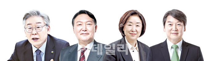 왼쪽부터 이재명 더불어민주당 후보, 윤석열 국민의힘 후보, 심상정 정의당 후보, 안철수 국민의당 후보.(그래픽=이데일리DB) |