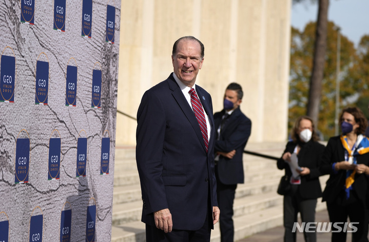 [로마=신화/뉴시스] 세계은행(WB)은 러시아의 침공 위기에 직면한 우크라이나에 3억5000만 달러를 지원할 계획이라고 밝혔다. 사진은 데이비드 맬패스 WB 총재가 지난해 10월19일 이탈리아 로마에서 열린 G20 재무·보건장관 회의에 참석한 모습. 2022.02.20 |