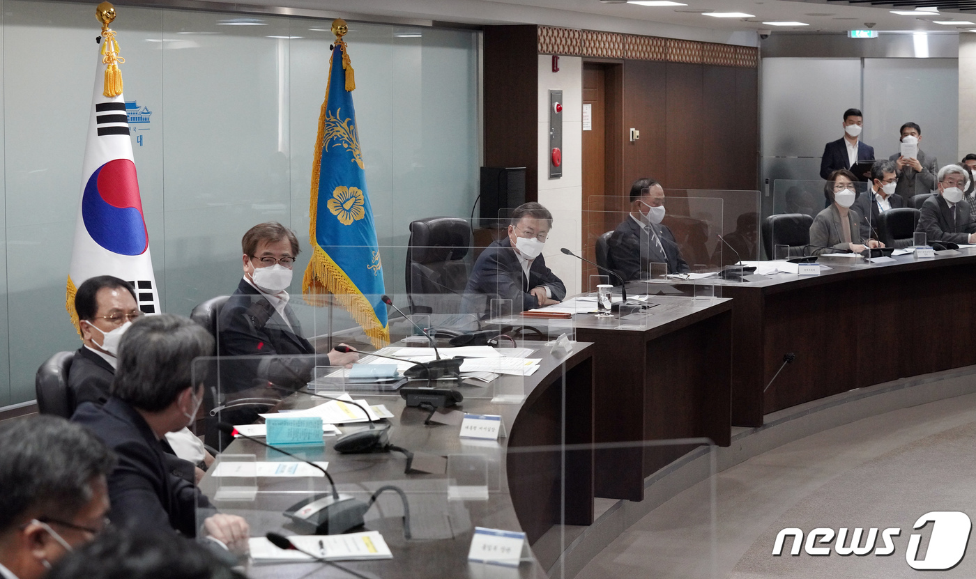 문재인 대통령이 22일 오전 청와대 국가위기관리센터에서 ‘2022년도 국가안전보장회의 및 대외경제안보전략회의 연석회의’를 주재하고 있다.(청와대 제공)2022.2.22/뉴스1 |