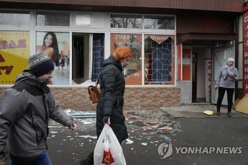 러시아군 포격으로 유리창 깨진 우크라 키예프 상점 |