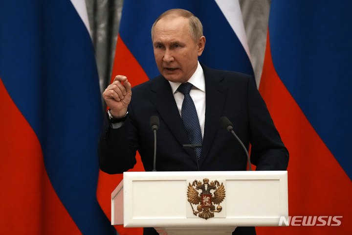 [모스크바=AP/뉴시스] 블라디미르 푸틴 러시아 대통령. 2022.02.08. |