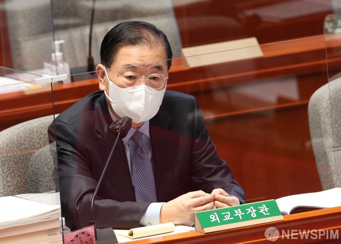 [서울=뉴스핌] 이형석 기자 = 정의용 외교부 장관이 지난해 11월 12일 오전 국회에서 열린 예산결산특별위원회 전체회의 비경제부처질의에 출석 의원들의 질문에 답하고 있다. 2021.11.12 leehs@newspim.com |