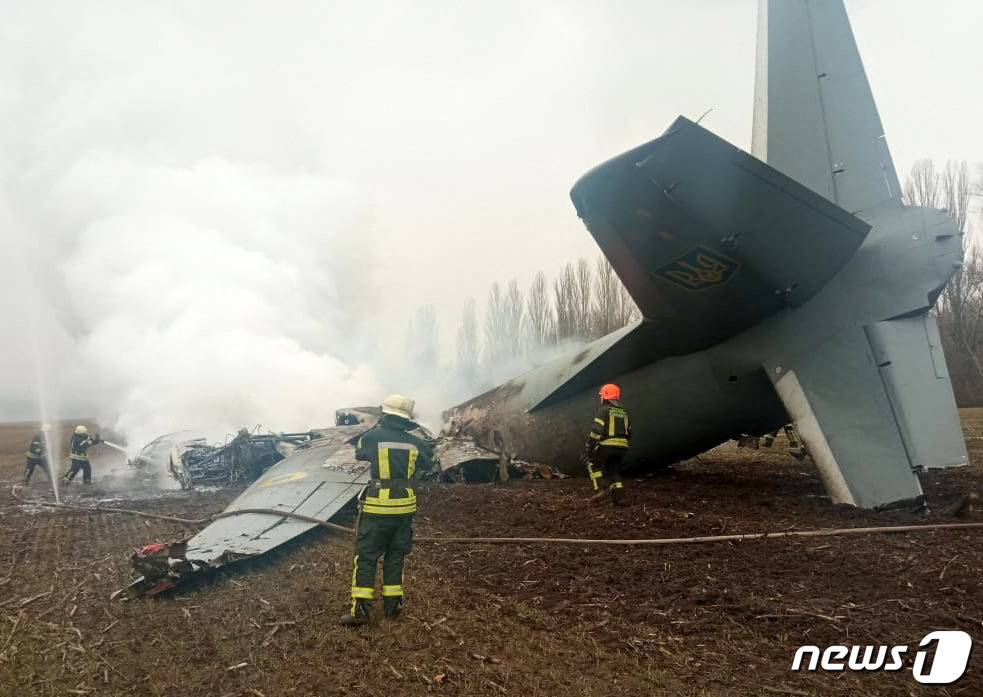 24일(현지시간) 키예프 남부 우크라이나 군용기 추락현장에서 응급요원들이 구조를 하고 있다. 14명을 태운 우크라이나 군용기가 목요일 키예프 남부에서 추락했다고 긴급구조대가 밝혔다. © AFP=뉴스1 © News1 포토공용 기자 |