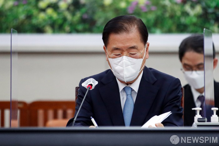 [서울=뉴스핌] 이형석 기자 = 정의용 외교부 장관이 25일 오후 서울 여의도 국회에서 열린 러시아-우크라이나 사태 관련 국회 외교통일위원회 전체회의에서 메모를 하고 있다. 2022.02.25 leehs@newspim.com