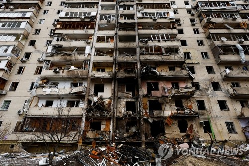 러시아군 폭격으로 파괴된 키예프 시내 아파트 |