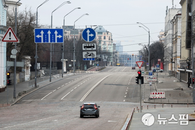 [키예프 로이터 =뉴스핌] 구나현 기자 = 러시아가 전면적인 우크라이나 침공을 개시한 이후 우크라이나 수도 키예프의 텅 빈 거리 모습. 2022.02.25 gu1218@newspim.com |