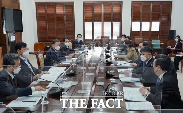 문재인 대통령이 25일 건강보험 보장성 강화 정책을 펼치면서, 건보 재정을 오히려 더 튼튼해졌다고 밝혔다. 문 대통령이 이날 오전 청와대에서 열린 글로벌 에너지 공급망 현안 점검 회의에 참석한 모습. /청와대 제공 |