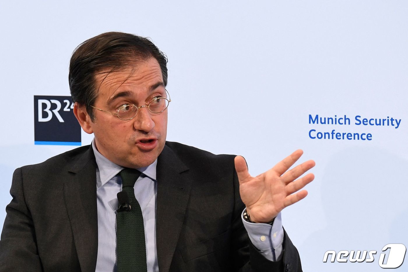 2022년 2월 20일(현지시간) 독일 남부 뮌헨에서 열린 뮌헨 안보회의(MSC)에서 호세 마누엘 알바레스 스페인 외무장관이 연설하고 있다. © AFP=뉴스1 © News1 김지현 기자 |