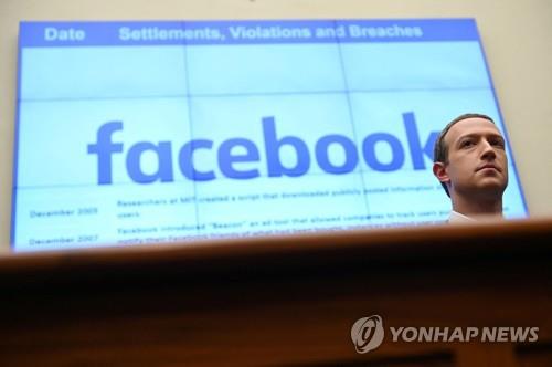 페이스북 표시가 뜬 모니터 앞의 마크 저커버그 CEO |