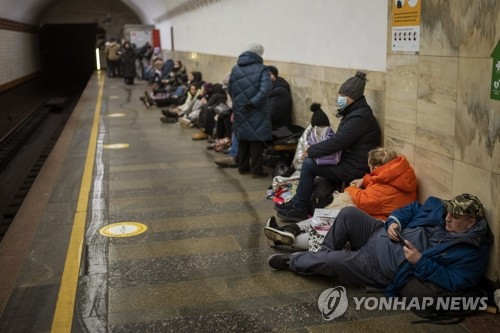 러시아군 침공 속 지하철로 대피한 우크라 키예프 시민들 |
