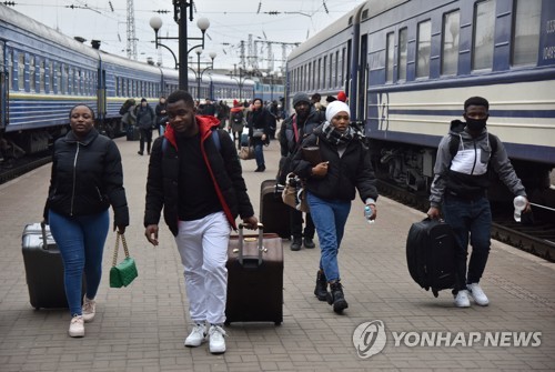 우크라이나 피란민들이 리비우에 도착하고 있는 모습. [로이터 연합뉴스] 2022. 2. 25. photo@yna.co.kr |