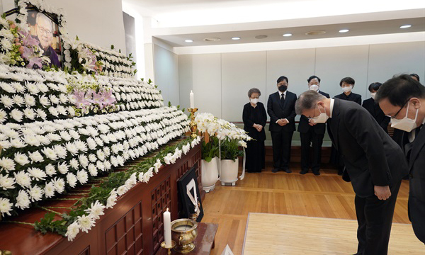 문 대통령은 “정부가 지난해 금관문화훈장을 수훈한 것이 선생님의 큰 공로를 기리는 일이 됐다. 선생님은 우리에게 많은 것을 남겨주셨다”며 “그것은 모양은 달라도 모두 대한민국을 사랑하는 방법에 관한 것”이라고 했다.