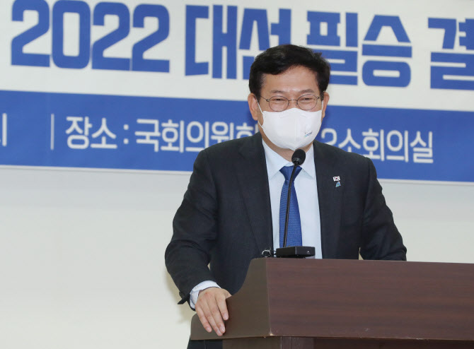 더불어민주당 송영길 대표가 지난달 서울 여의도 국회 의원회관에서 열린 원외위원장협의회 총회에서 축사를 하고 있다. (사진= 국회사진기자단) |