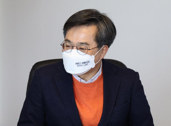 김동연 새로운물결 대통령 선거 후보가 28일 오후 서울 중구 명동 천주교 서울대교구청을 방문해 정순택 대주교와 만나 환담하고 있다.(사진=연합뉴스) |
