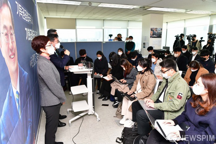 김동연 새로운물결 대선후보 사퇴 기자회견... 이재명 후보 지지