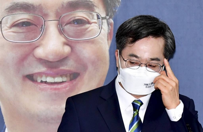 [서울=뉴시스] 국회사진기자단 = 김동연 새로운물결 대선 후보가 2일 서울 영등포구 선거 캠프에서 기자회견을 열고 후보 사퇴 및 이재명 더불어민주당 후보의 지지 의사를 밝히기 앞서 잠시 생각에 잠겨 있다. 2022.03.02. |
