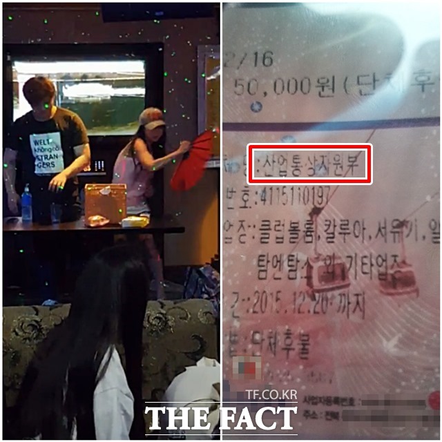 2일 <더팩트>가 단독 입수한 전북의 한 리조트 내 입점한 유흥주점 회계자료를 입수해 분석한 결과 산업통상자원부와 환경부, 행정차지부, 중소기업청 등의 공무원들은 2014년부터 2017년까지 이곳에서 3800여만 원의 술값과 불법 여성 접대부 비용을 이른바 '상품권 깡' 방식으로 지출한 것으로 확인됐다.