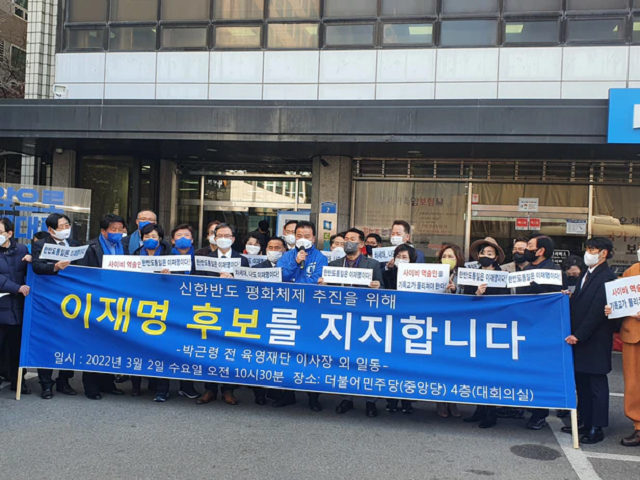 박 전 이사장 측은 이날 서울 여의도 더불어민주당 당사 앞에서 "이재명 대선 후보를 지지합니다"라는 내용의 기자회견을 열고 코로나19 확진으로 기자회견에 참석하지 못한 박 전 이사장을 대신해 지지선언문을 낭독했다.