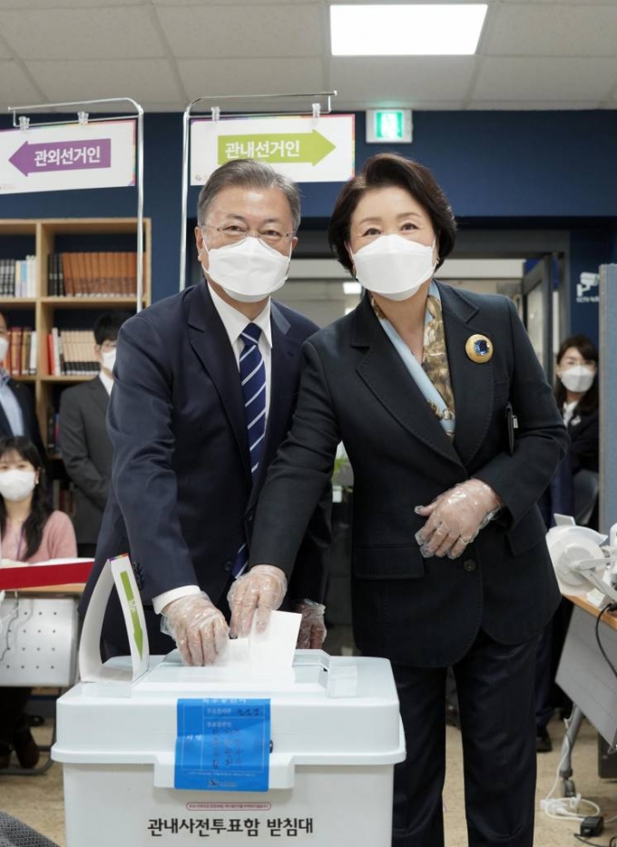 청와대는 문 대통령 부부가 이날 오전 9시쯤 청와대 인근의 서울 종로 삼청동 주민센터를 방문해 사전투표를 완료했다고 밝혔다.