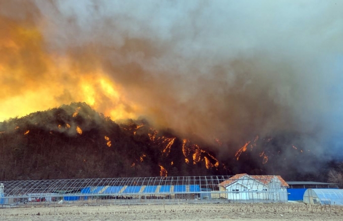 [서울=뉴시스] 4일 경북 울진군 북면 두천리 289 일원에서 산불이 발생해 대형산불주의보가 발령되었다. (사진=소방청 제공) 2022.03.04. *재판매 및 DB 금지 |