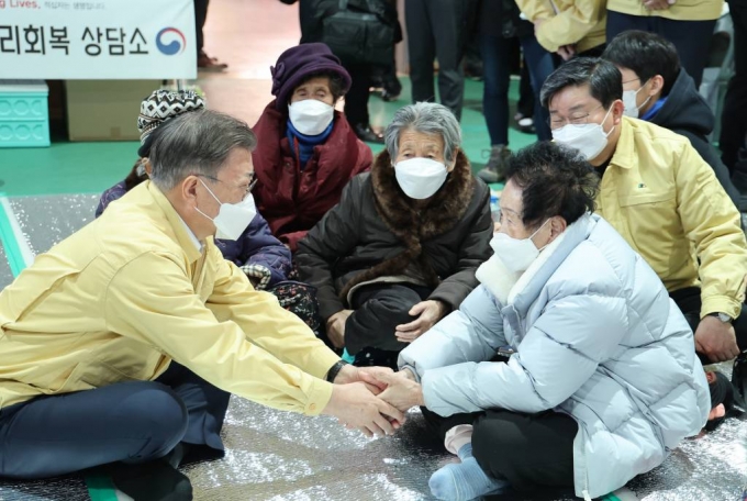 문 대통령은 이날 오전 경북 울진 국민체육진흥센터에 마련된 이재민 대피소를 찾아 피해 현황과 이재민 지원 대책을 직접 점검했다.