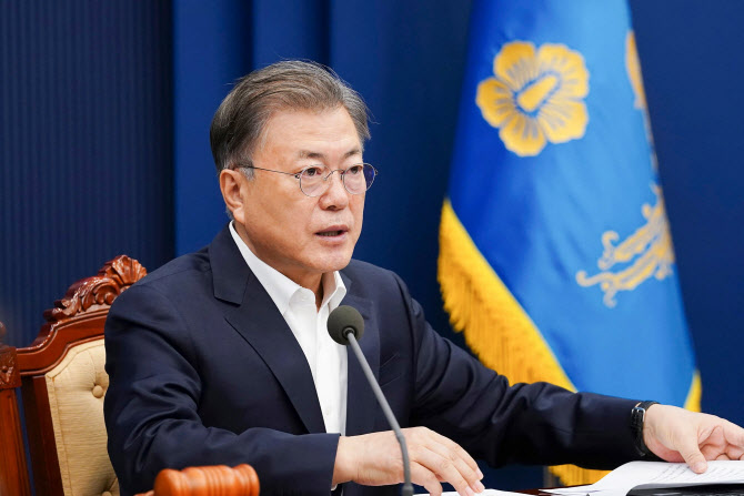 문재인 대통령이 지난 8일 청와대 여민관에서 열린 영상 국무회의를 주재하고 있다. 사진=연합뉴스. |