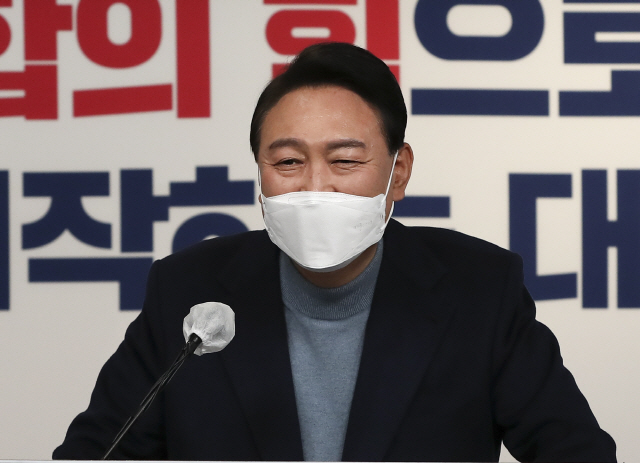 윤석열 대통령 당선인이 지난 13일 오후 서울 여의도 국민의힘 당사에서 대통령직인수위원회 위원장 및 부위원장 인선 결과를 발표한 뒤 취재진의 질문에 답하고 있다. 국회사진기자단 |