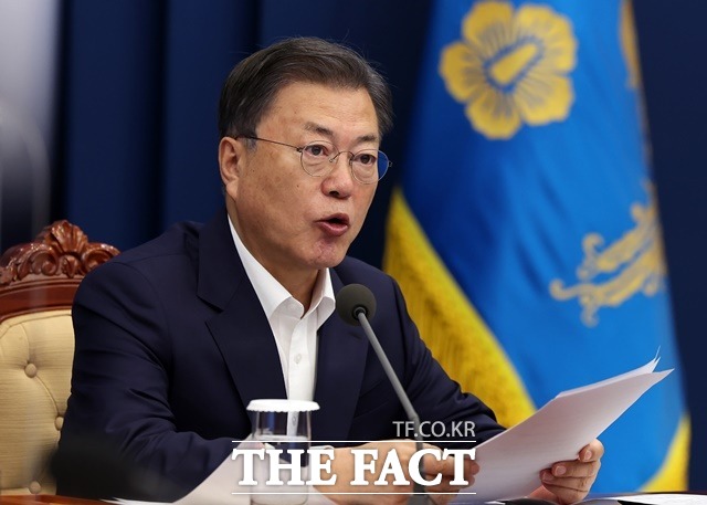 문재인 대통령이 14일 오후 청와대 여민관에서 열린 수석보좌관회의에서 발언하고 있다. /뉴시스 |