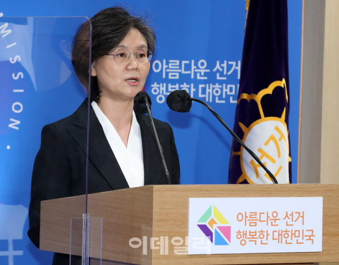 노정희 중앙선거관리위원회 위원장이 제20대 대통령 선거를 하루 앞둔 8일 경기도 과천시 중앙선관위에서 ‘국민께 드리는 말씀’ 대국민 담화문을 발표하고 있다.(사진=이데일리DB) |