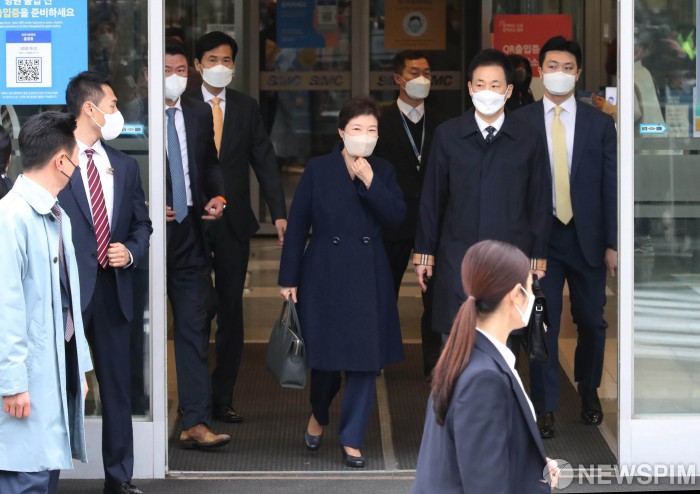 [서울=뉴스핌] 황준선 기자 = 지난해 12월 31일 특별사면을 받은 후 삼성서울병원에서 치료를 받아온 박근혜 전 대통령이 24일 오전 서울 강남구 삼성서울병원에서 퇴원하고 있다. 2022.03.24 hwang@newspim.com