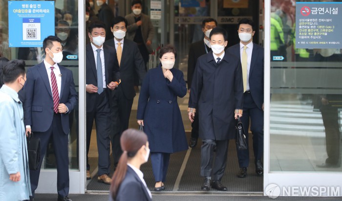 [서울=뉴스핌] 황준선 기자 = 지난해 12월 31일 특별사면을 받은 후 삼성서울병원에서 치료를 받아온 박근혜 전 대통령이 24일 오전 서울 강남구 삼성서울병원에서 퇴원하고 있다. 2022.03.24 hwang@newspim.com