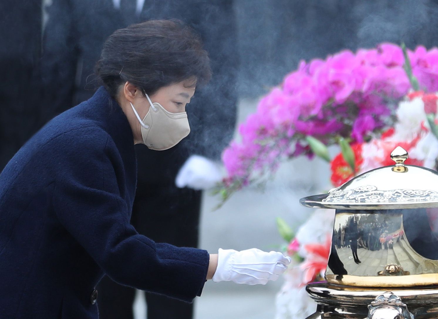 박근혜 전 대통령이 24일 오전 서울 동작구 국립서울현충원에서 부친인 박정희 전 대통령 묘역을 찾아 참배하고 있다./장련성 기자 |
