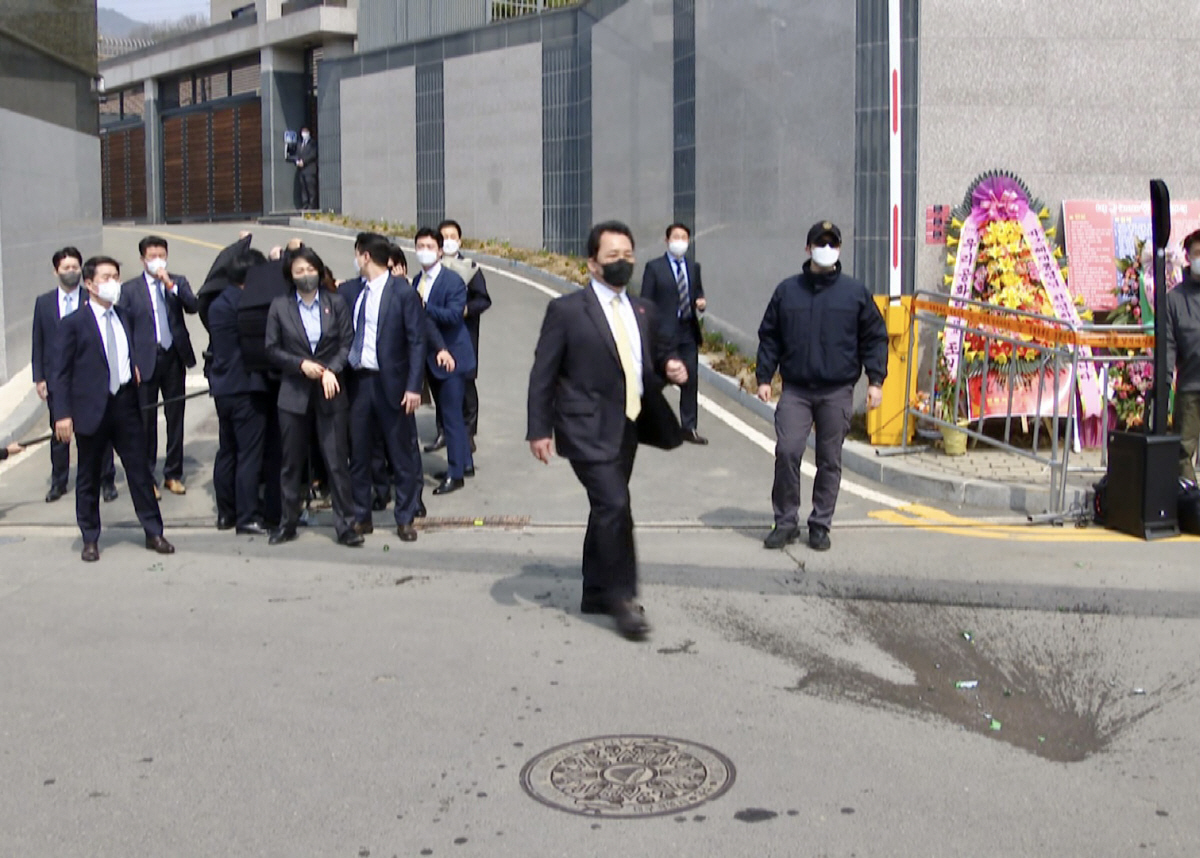 영어의 몸에서 풀려난 대구 사저로 간 박근혜 전 대통령에게 한 남성이 소주병을 투척했다.