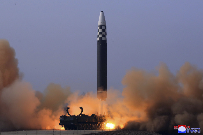 북한 국영방송 조선중앙통신이 전한 화성-17 시험발사 장면 |