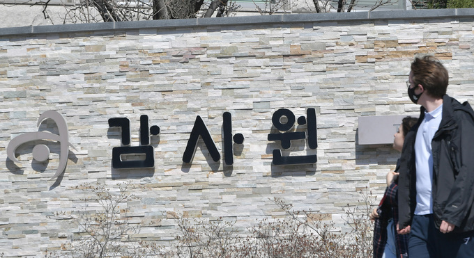 공석이 된 감사원의 감사위원 임명 제청을 놓고 신경전을 벌이던 문재인 대통령과 윤석열 대통령 당선인이 28일 조건 없이 회동하겠다고 27일 밝힌 가운데 논란이 된 서울 종로구 감사원 앞을 시민들이 걸어가고 있다. 하상윤 기자 |