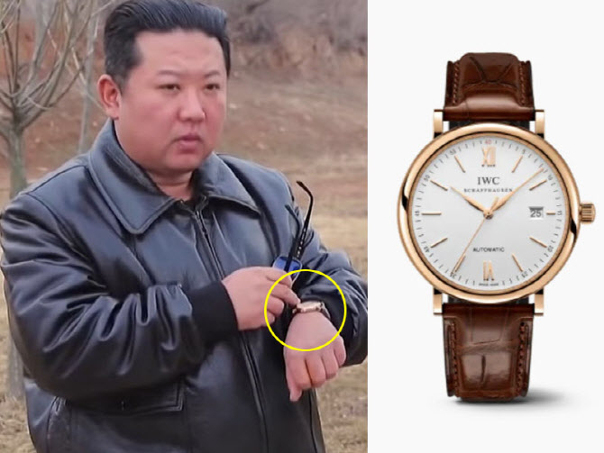 해당 영상에서 등장한 김 위원장의 갈색 가죽 시계는 스위스 명품 시계 브랜드 ‘IWC 샤프하우젠’의 포르토피노 모델 중 하나로, 공식 홈페이지 가격에 의하면 국내가로 1600만 원에 판매되고 있다.