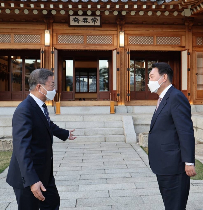 문 대통령과 윤 당선인의 만남은 역대 대통령과 당선인 간 만남 중 가장 늦은 기록이다. 당초 지난 16일 오찬 형식의 만남을 갖기로 했다가 양측 간 실무적 협의가 마무리되지 않았다는 이유로 불발됐다.