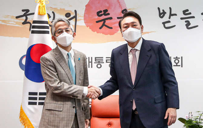 29일 아사히신문은 복수의 한일관계 소식통을 인용, 윤 당선인이 28일 아이보시 고이치 주한 일본대사를 만난 자리에서 국회의원, 외교나 일본 전문가들로 구성된 정책협의단을 도쿄에 파견할 것이란 의향을 전했다.