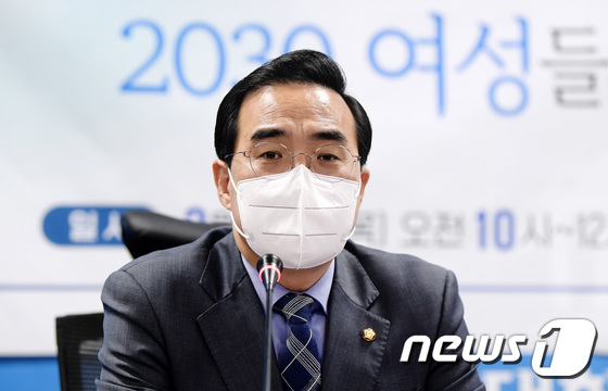 (서울=뉴스1) 구윤성 기자 = 박홍근 더불어민주당 원내대표가 31일 오전 서울 여의도 국회 의원회관에서 열린 제20대 대통령선거 이후 2030 여성의 더불어민주당 입당 의미와 과제 토론회에서 인사말을 하고 있다. 2022.3.31/뉴스1