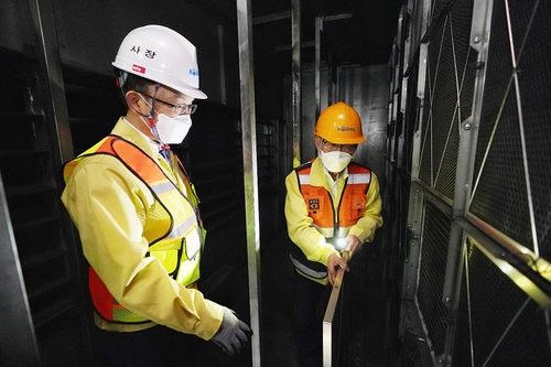 공덕역 공조기 점검하는 나희승 코레일 사장(왼쪽) |