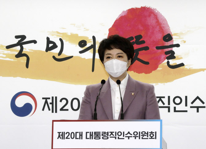 김은혜 대통령 당선인 대변인이 1일 오전 서울 종로구 통의동 금융감독원 연수원에 마련된 대통령직인수위원회에서 일일 브리핑을 하고 있다. [공동취재] |