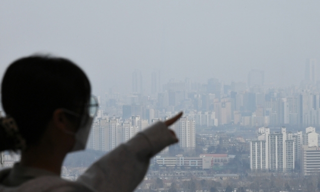 지난 2월13일 전국 대부분 지역에서 초미세먼지 농도가 ‘나쁨’ 수준을 보인 가운데 서울 용산에서 바라본 서울 도심이 뿌옇다. 남정탁 기자 |
