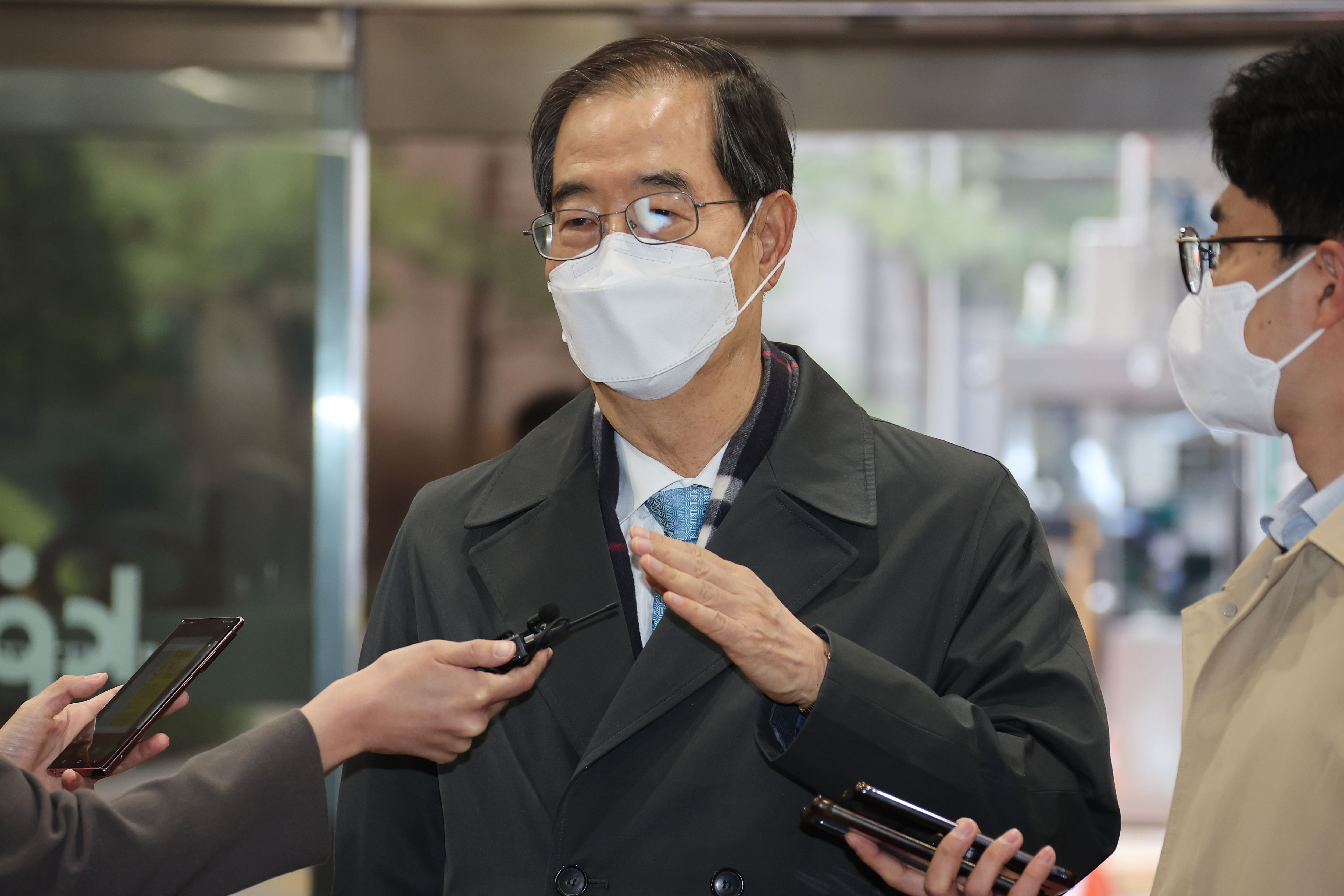 한덕수 국무총리 후보자가 6일 오전 서울 종로구 한국생산성본부 건물에 마련된 국회 인사청문회 준비단 사무실에 출근하며 기자들을 만나 질문에 답하고 있다. /연합뉴스 |