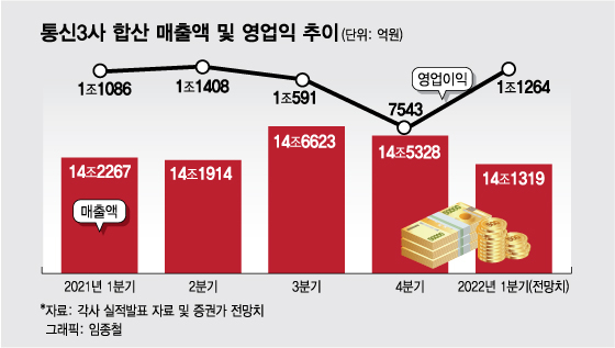 통신3사, 1Q 합산 영업익 1조원 재탈환 고지에