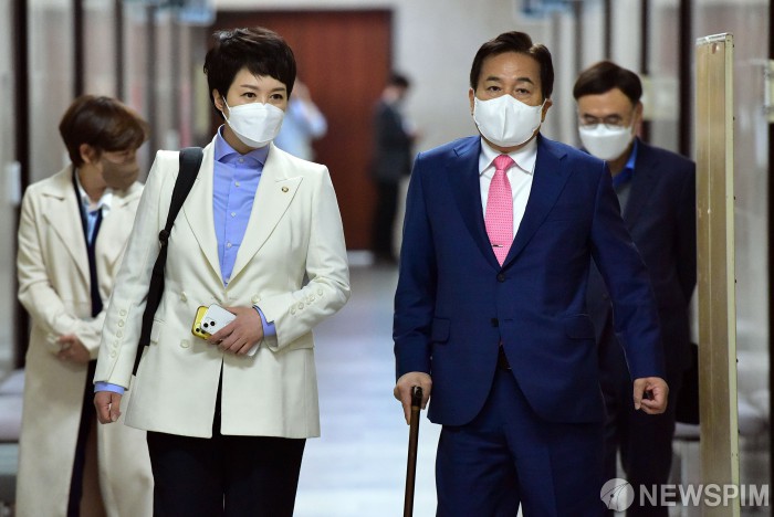 [서울=뉴스핌] 최상수 기자 = 심재철 전 국회부의장(오른쪽)과 김은혜 의원이 지난 8일 국회에서 국민의힘 제8회 전국동시지방선거 광역단체장 공천신청자 면접에 참석하고 있다. 2022.04.08 kilroy023@newspim.com |